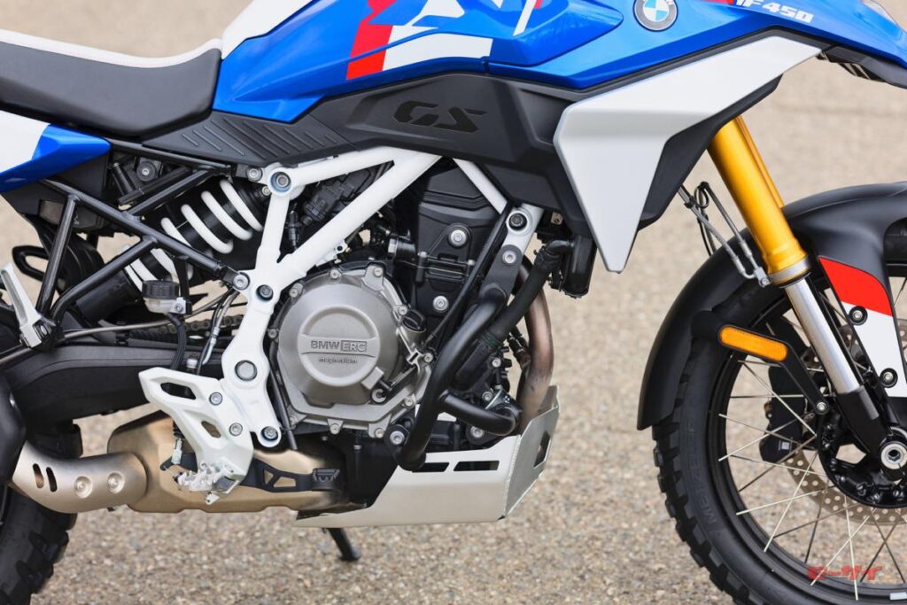 BMWでは、既にこのクラスに向けたモデルとして単気筒エンジン車のG310GSがあるが、これは主にインドや東南アジア圏など新興国でのシェア拡大を狙ったモデル。足回りやエンジンフィールも及第点をねらった印象でコストをバランスさせた印象だったが、新たなF450GSはそれ以上に気合の入ったモデルに感じられる。