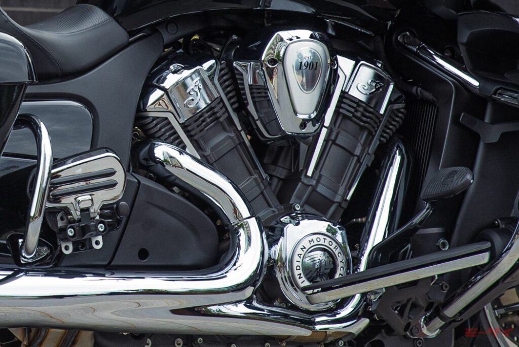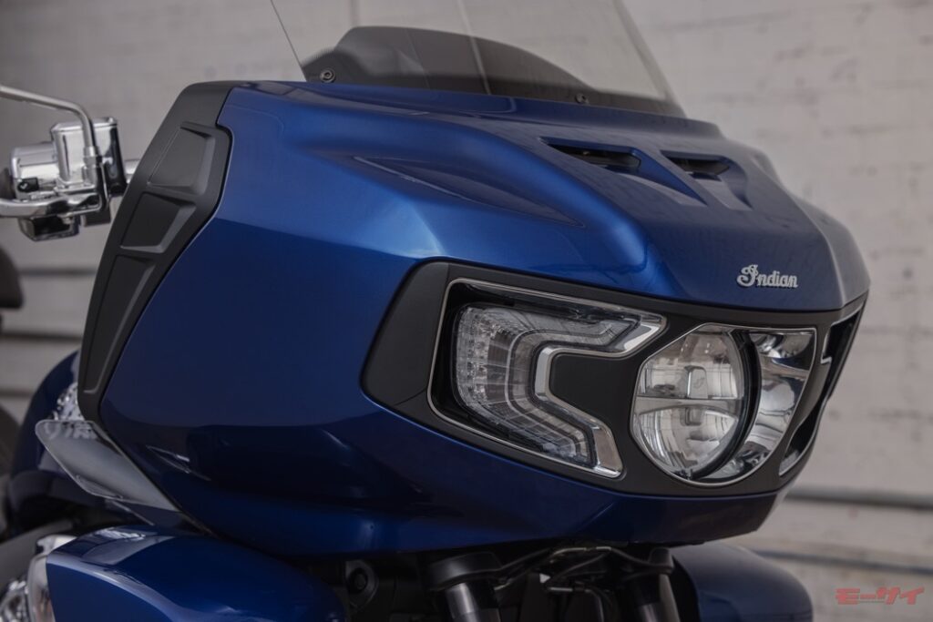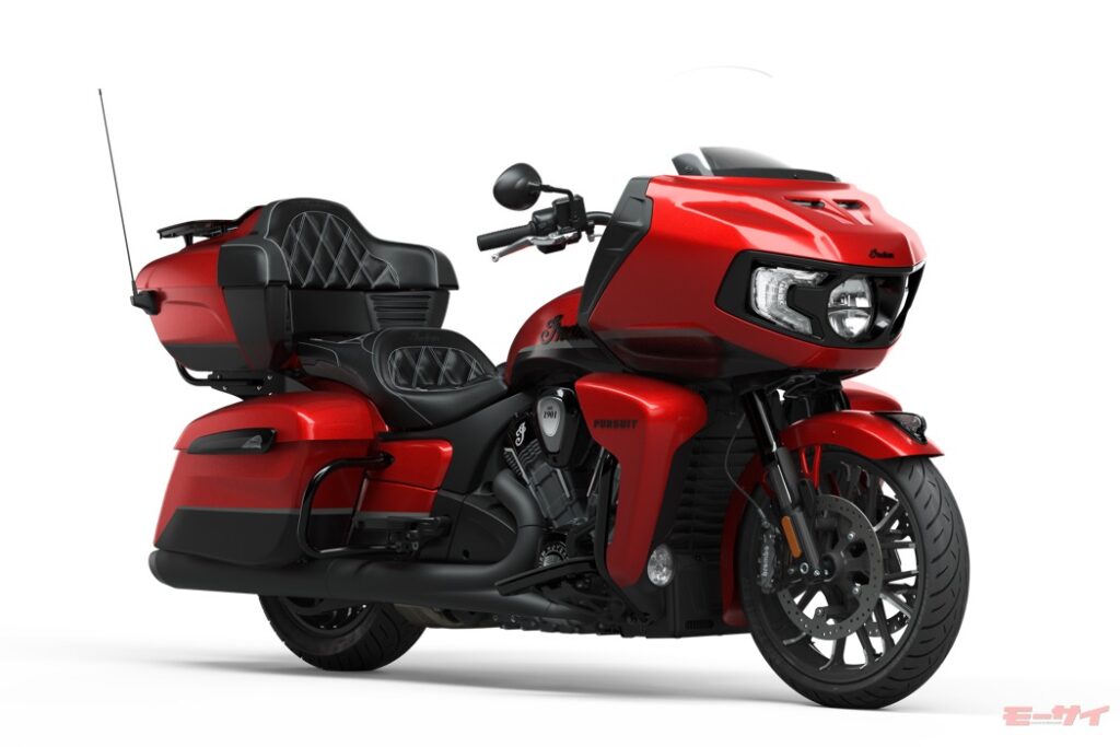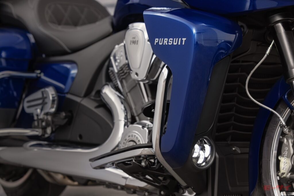 パースートは大型カウルを備えたチャレンジャーシリーズの発展型で、最高出力122馬力/最大トルク18.1kgmを発揮する1768cc水冷V型2気筒「パワープラス」エンジンを搭載。クルーズコントロールも標準装備となっている。