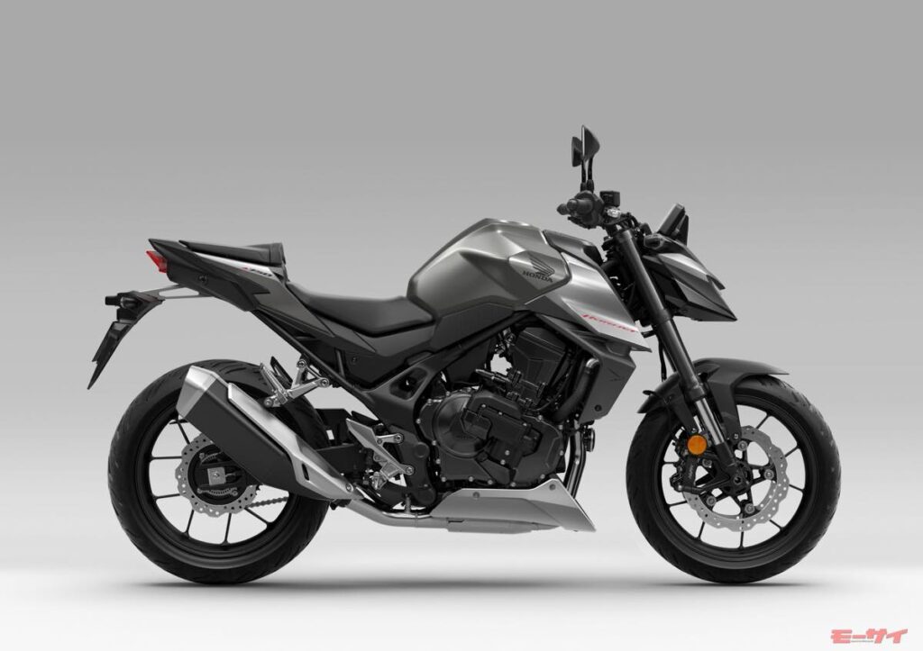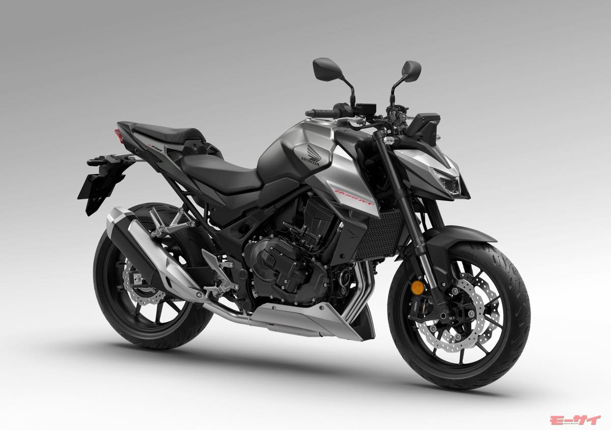CB750ホーネットは、91ps/7.6kgmを発揮する754cc水冷4ストローク並列2気筒OHCエンジンをスチール製ダイヤモンドフレームに搭載。フロントサスにはショーワのSFF-BP(セパレート・ファンクション・フロントフォーク・ビッグピストン)倒立フォーク、リヤにはプロリンクサスペンションを採用。ブレーキはフロントがニッシン製対向4ポットラジアルマウントキャリパー+φ296mmダブルディスク、リヤは1ポットキャリパー+φ240mmシングルディスクで、ABSを組み合わせる。