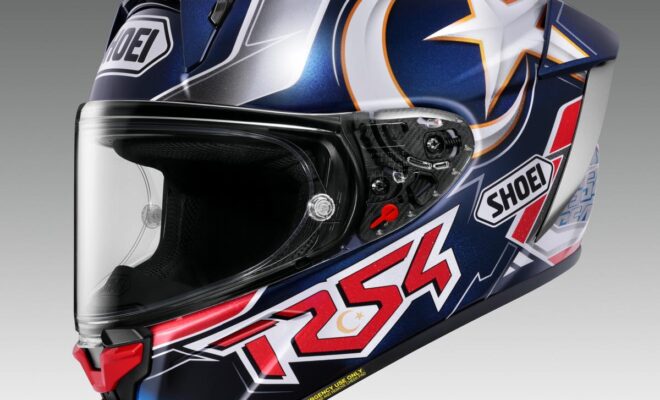 2026年はMotoGPに参戦するトプラック・ラズガットリオグルモデルが登場SHOEIは、強靱なガラス繊維と3次元形状とした有機繊維の複合積層構造を基に高い弾性性能を持つ高性能有機繊維をプラス、軽量でありながらも剛性弾性に優れる高…
