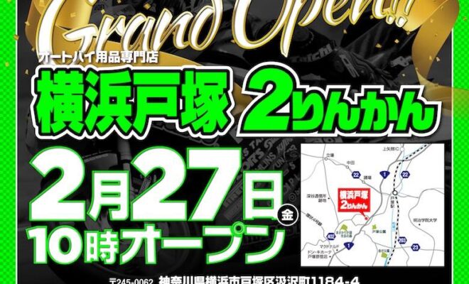 2月27日〜3月1日の3日間は会員限定で10%オフ!さらにお買い得品の販売やイベントも開催!バイク用品チェーンの2りんかんイエローハットは2026年2月27日(金)、神奈川県横浜市戸塚区に「横浜戸塚2りんかん」を新規オープンする。…