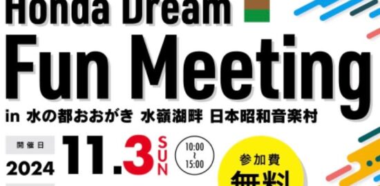 「Honda Dream Fun Meeting」岐阜県大垣市の水の都おおがき 水嶺湖畔 日本昭和音楽村で11月3日(日)開催!