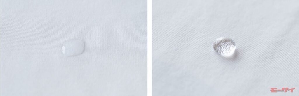 ライディングウエアでは急な降雨に備え、高い防水透湿性能を備えているモデルも多い。外側からの雨水を遮断し、内側からの湿気を放出できれば、快適に走行できる……ハズ。だが、実際は過酷な走行環境の中、ウエアは汚れて撥水性能を維持できなくなり、べったりと水が表面を覆って湿気放出の通り道を塞ぎ、内側が溜まった湿気で濡れてしまう。これではビニールのカッパを着ているのと同じだ。防水透湿のウエアは特に、その性能を生かすためにも汚れ落としと撥水性能の回復メンテナンスが必要なのだ。