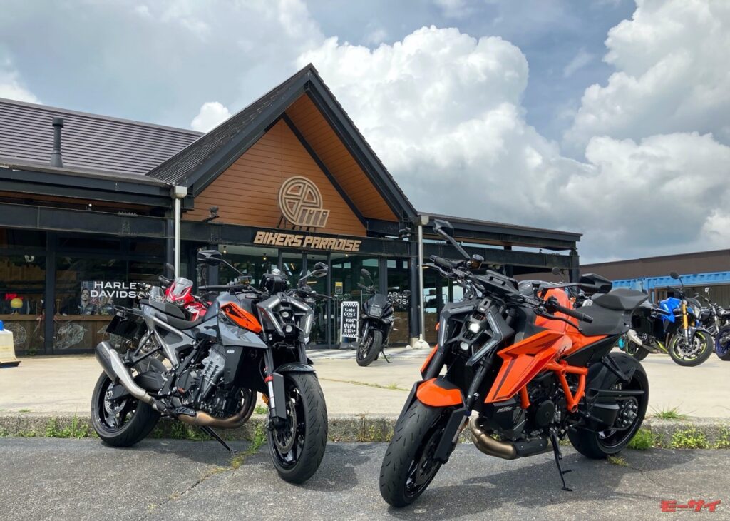 大観山のイベント会場から4kmほど離れたバイカーズパラダイス南箱根ではKTM 1390 SUPER DUKE R EVOとKTM 990 DUKEのレンタルを実施中。ミーティング参加後、KTMの最新モデルを味わってみてはいかが?