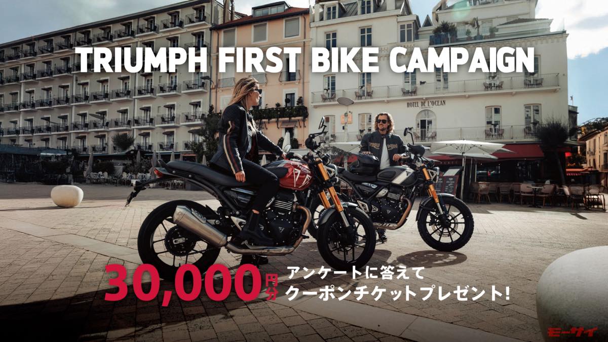 トライアンフモーターサイクルズジャパンは、普通自動二輪免許の取得から6か月以内の人を対象とする「ファーストバイクキャンペーン」を実施する。