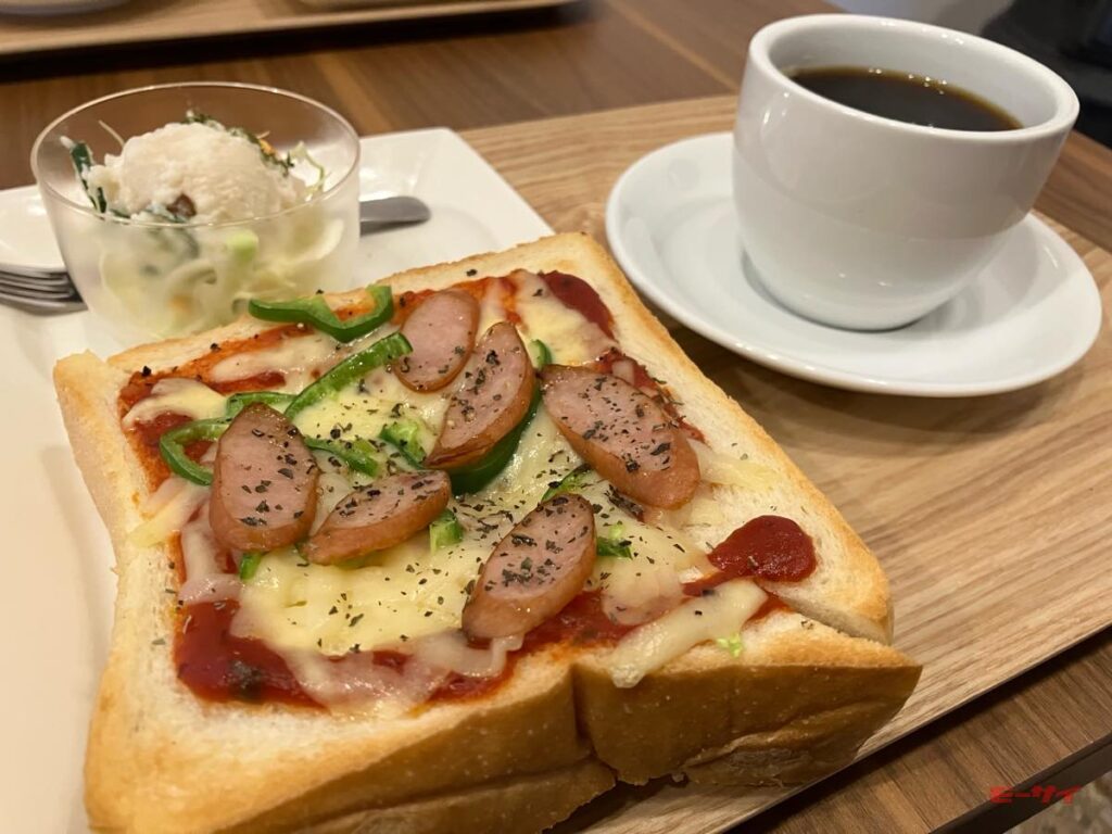 午前中の8:00~12:00まではモーニングで厚切りトーストセット、またはピザトーストセットが楽しめるほか、午後の13:00~17:00まではドリンク(¥500~)のみの提供となる。営業は土曜日・日曜日・月曜日(火~金はお休み)。