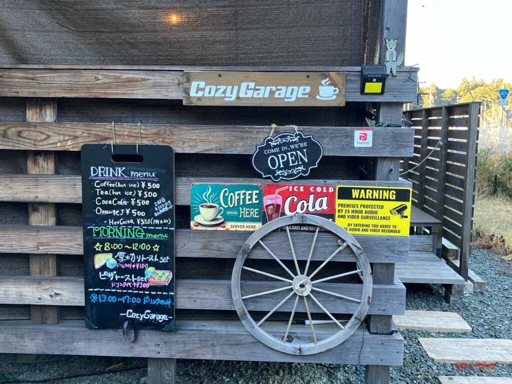 2025年秋にオープンしたばかりのライダーズカフェが「Cozy Garage」。浜松市を起点とし、浜名湖西岸、愛知県山間部まで続くのが国道301号だが、その軽快なワインディングロード沿いにあるカフェであり、ツーリング中の立ち寄り休憩スポットとしてちょうどよい地点にある。