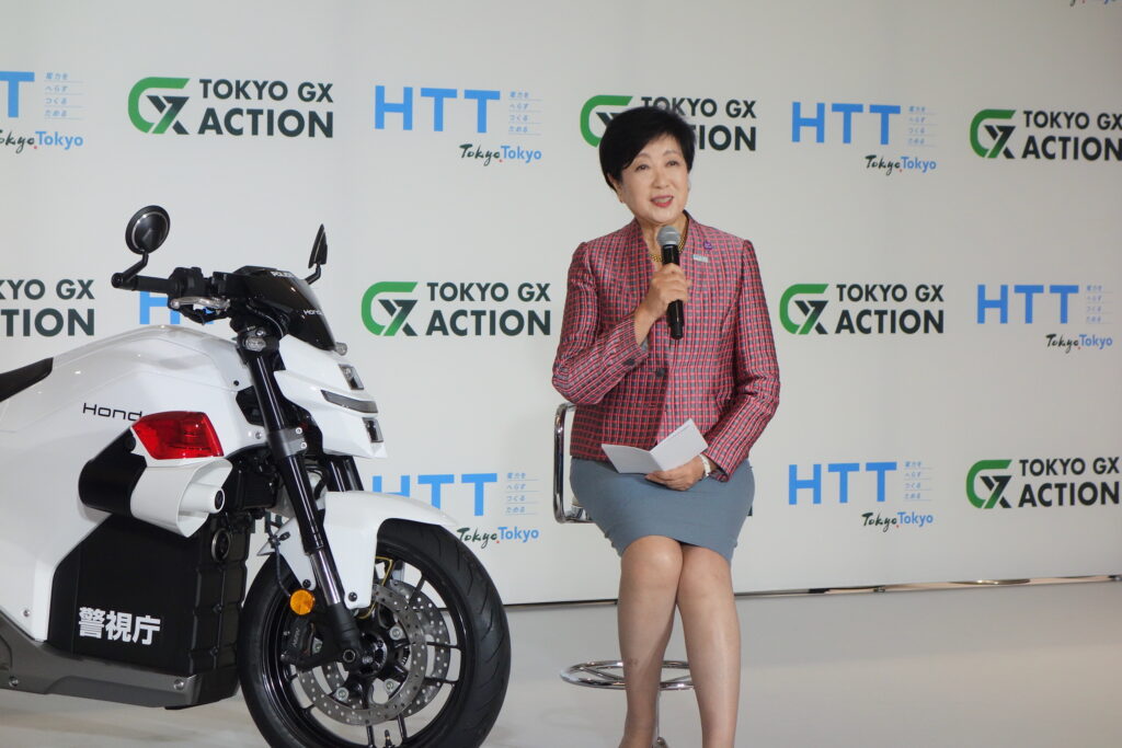 会場では、東京都知事の小池百合子氏とバイク好きとして知られるタレントのつるの剛士さんが登壇。
