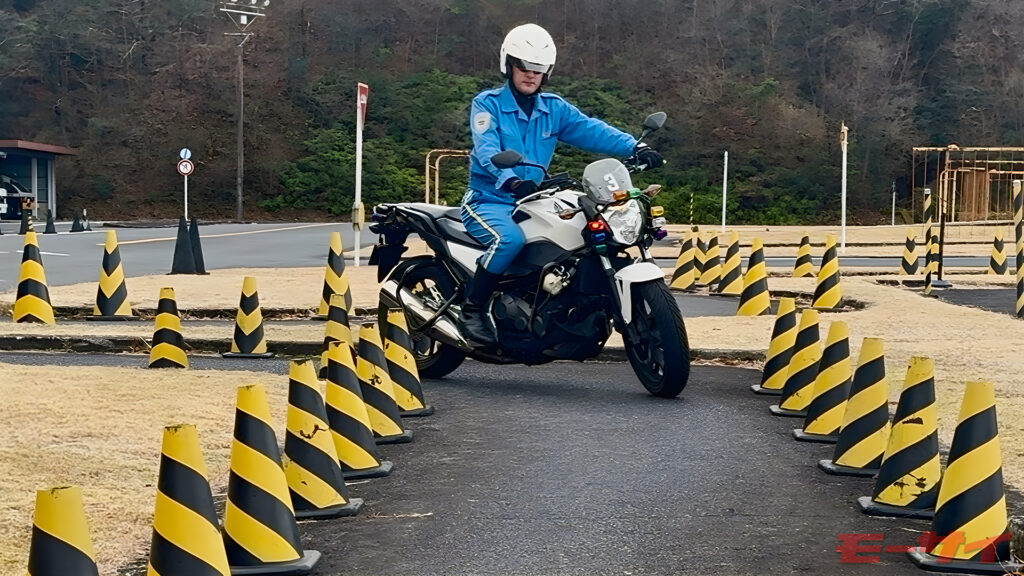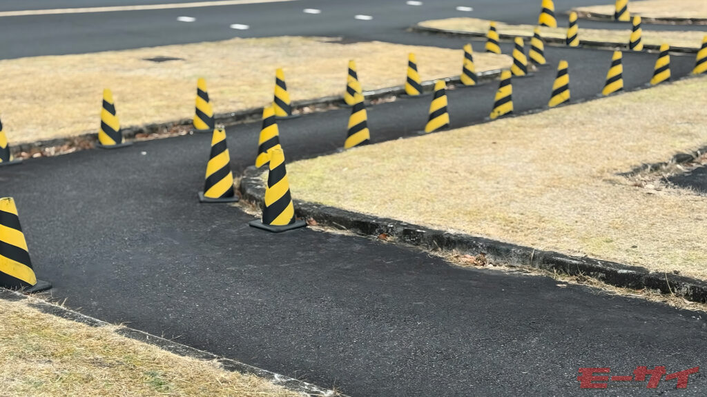 直角コーナーが連続するあのコース、公道で遭遇したら普通は足を着いてヨボヨボ進むか、そもそも入りませんよね。でも、あの課題の本質は「狭いところを曲がること」そのものではありません。あれは、重い鉄塊を「アクセル・クラッチ・リヤブレーキ」の三位一体で手なずけるためのトレーニングなんです。