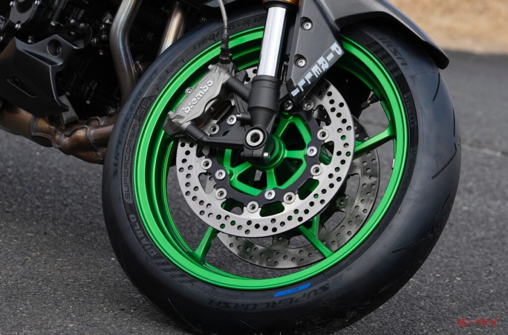 なお、Z900 SEのZ900(スタンダード車)との差異としては、専用車体色のほか、フロントブレーキがブレンボ製キャリパーなどによって強化され、前後サスペンションもグレードアップしていることが挙げられる。