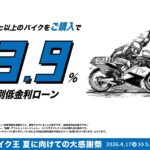 ②126cc以上のバイクをご購入で、年利3.9%特別低金利ローン