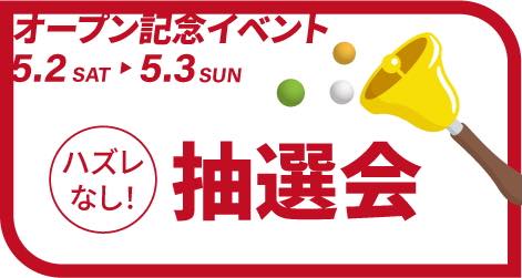 5月2日(土)、3日(日)の2日間、当店舗への来場者全員が参加できる抽選会を実施。バリバリ伝説コラボのオリジナルトートバッグをはじめ、各種景品を多数用意。