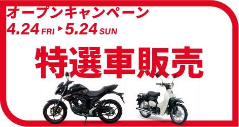 内容:50ccクラス12万9800円~※車両本体価格(税込)を5台販売/51~250ccクラス19万8000円~※車両本体価格(税込)を15台販売