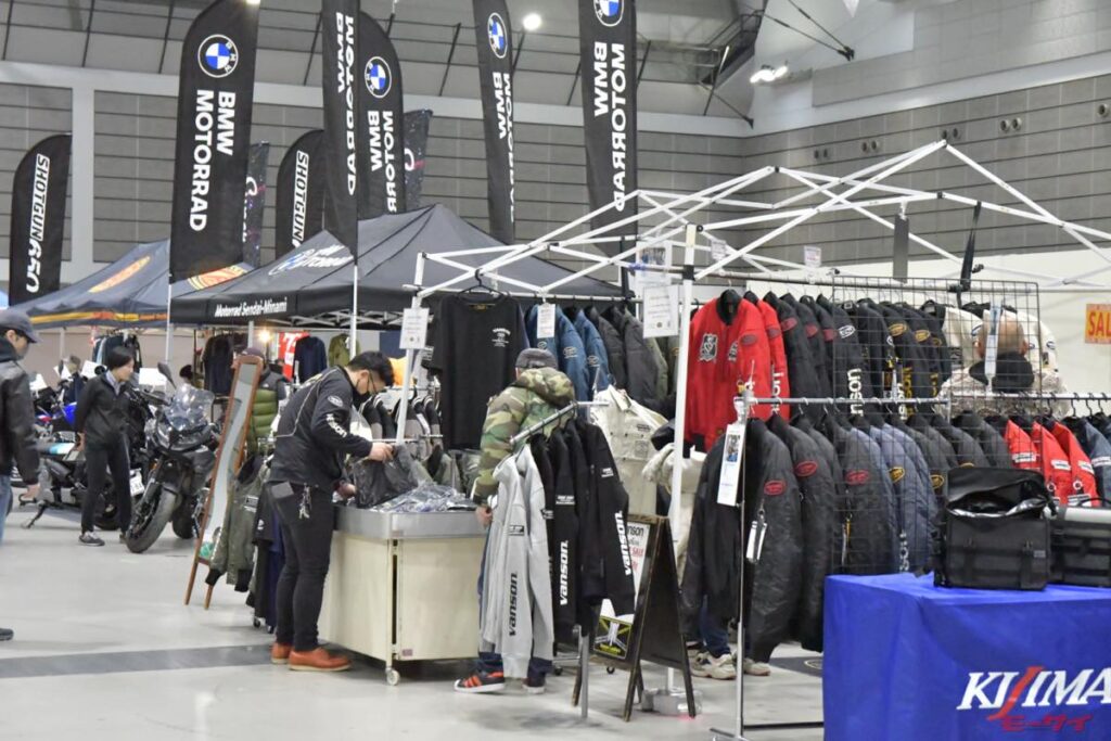 バイク用品ブースには、アライ、SHOEI、カブト、ウインズ、LS2のヘルメットメーカーをはじめ、ライズ、サイン・ハウス、タナックス、キジマ、デグナー、フラッグシップ、アルパインスターズ、ナンカイ、etc.……といった多くのバイク用品・グッズ・パーツ・アパレルメーカーが勢揃い。商品展示即売会やアウトレットセールを開催する。