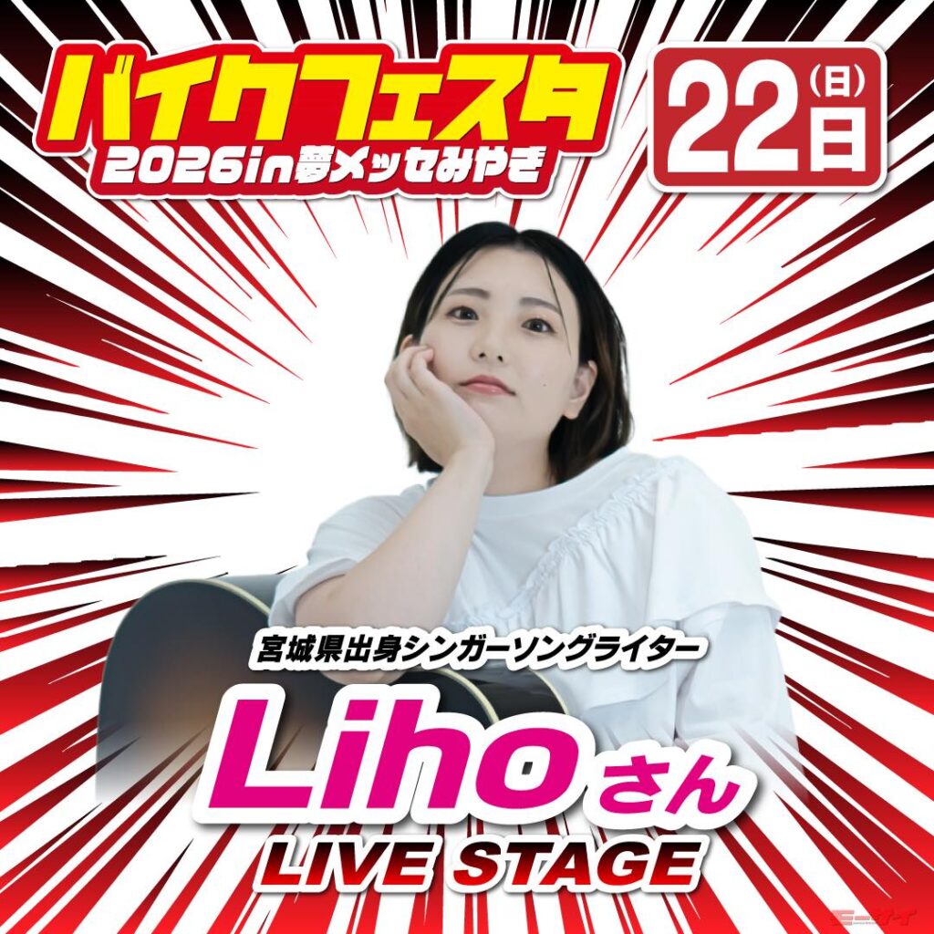 ステージでは、21日はDate fm(FM仙台)・AIR JAM Friday DJの本間秋彦さんと佐藤友紀乃さんのスペシャルトークショー、宮城県出身のシンガーソングライター・Cha’Rさんのライブステージ、ダンススクール「D_LuVz」のダンスステージを実施。22日は宮城県出身のシンガーソングライターのLihoさんのライブステージ、バイク女子YouTuber・院卒ライダーゆうかさんのトークショーを行う(スケジュールはウェブサイト等で確認のこと)。
